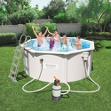 Производитель: Bestway Модель: Hydrium 56566 - Жёсткий бассейн - диаметр 300 см - глубина 120 см - объём 7630 л - водяной насос Описание