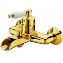 Назначение: ванна+душ • Конструкция: однорычажный • Монтаж: вертикальный • Материал: покрытие - золото • Подводка: жесткая • Монтажные отверстия: 2 отверстия • Форма излива: каскадная • Душевая лейка в комплекте: нет