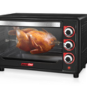 Тип: электрическая • Установка: независимая • Объем: 36 л • Цвет: черный • Дверца: откидная • Максимальная температура: 320 °С • Очистка духовки: традиционная • Подсветка: есть • Количество режимов работы духовки: 4 • Переключатели: поворотные • Таймер: есть, звуковой, с отключением, до 90 мин • Потребляемая мощность: 1600 Вт • Комплектация: 1 противень, 1 решетка, ручка для извлечения противней