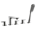 Назначение: ванна+душ • Конструкция: двухрычажный • Монтаж: горизонтальный • Материал: покрытие - хром • Монтажные отверстия: 5 отверстий • Форма излива: традиционная • Душевая лейка в комплекте: есть • Донный клапан в комплекте: есть