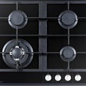 Поверхность: варочная панель • Тип поверхности: газовая • Рабочая поверхность: закаленное стекло • Число конфорок: 4 • Установка: независимая • Газовые конфорки: всего - 4 (1 конфорка "Двойная корона") • Газ-контроль конфорок: есть • Тип управления: механическое • Переключатели: поворотные • Электроподжиг: есть, автоматический • Размеры: 580x500x100 мм • Цвет: панель - черный