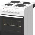 Тип конфорок: электрические • Рабочая поверхность: эмаль • Тип духовки: электрическая • Размеры (ШxВxГ): 500x850x560 мм • Цвет: белый • Конфигурация электрических конфорок: 2 x 1000 g 2 x 1500 g • Электрические конфорки: всего - 4 • Объем духовки: 50 л • Количество режимов работы духовки: 5 • Тип управления: механическое • Переключатели: поворотные • Ящик для посуды: есть