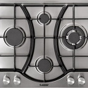Поверхность: варочная панель • Тип поверхности: газовая • Рабочая поверхность: нерж.сталь • Число конфорок: 4 • Установка: независимая • Газовые конфорки: всего - 4 (1 конфорка "Тройная корона") • Газ-контроль конфорок: есть • Тип управления: механическое • Переключатели: поворотные • Электроподжиг: есть, автоматический • Размеры: 600 мм • Цвет: панель - нерж.сталь