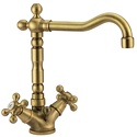 Назначение: ванна+душ • Конструкция: с раздельными клапанами • Монтаж: горизонтальный • Клапан: керамический • Материал: покрытие - бронза • Подводка: гибкая • Монтажные отверстия: 1 отверстие • Форма излива: традиционная • Душевая лейка в комплекте: нет • Донный клапан в комплекте: есть