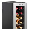 Тип: однокамерный винный шкаф • Расположение: отдельностоящий • Цвет: чёрный • Размеры (ШxВxГ): 252x545x593 мм • Количество дверей: однодверный • Общий объем: 33 л • Объем холодильной камеры: 33 л • Винный шкаф: 12 бут. • Управление: цифровой дисплей, электронное • Освещение в холодильной камере: есть • Холодильная камера: полка для бутылок x 5 • Материал полок: металл