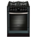 Тип конфорок: газовые • Рабочая поверхность: закаленное стекло • Тип духовки: электрическая • Размеры (ШxВxГ): 600x850x600 мм • Цвет: черный • Газовые конфорки: всего - 4 • Газ-контроль конфорок: есть • Объем духовки: 52 л • Конвекция: есть • Гриль: есть • Очистка духовки: традиционная • Подсветка: есть • Выдвижная ниша духовки: есть • Тип управления: механическое • Переключатели: поворотные