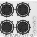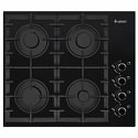Поверхность: варочная панель • Тип поверхности: газовая • Рабочая поверхность: закаленное стекло • Число конфорок: 4 • Установка: независимая • Газовые конфорки: всего - 4 • Газ-контроль конфорок: есть • Тип управления: механическое • Переключатели: поворотные • Электроподжиг: есть, автоматический • Размеры: 610x525x100 мм • Размер ниши для встраивания: 557x486 мм • Цвет: панель - черный