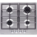 Поверхность: варочная панель • Тип поверхности: газовая • Рабочая поверхность: нерж.сталь • Число конфорок: 4 • Установка: независимая • Газовые конфорки: всего - 4 (1 конфорка "Тройная корона") • Газ-контроль конфорок: есть • Тип управления: механическое • Переключатели: поворотные • Электроподжиг: есть, автоматический • Размеры: 590x510x45 мм • Размер ниши для встраивания: 550x470 мм • Цвет: панель - нерж.сталь