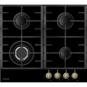 Поверхность: варочная панель • Тип поверхности: газовая • Рабочая поверхность: закаленное стекло • Число конфорок: 4 • Установка: независимая • Газовые конфорки: всего - 4 (1 конфорка "Тройная корона") • Газ-контроль конфорок: есть • Тип управления: механическое • Переключатели: поворотные • Электроподжиг: есть, автоматический • Размеры: 590x510 мм • Размер ниши для встраивания: 560x490 мм • Цвет: панель - черный