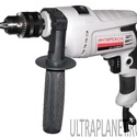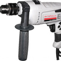 Одна из самых легких (всего 1,7кг!) и бесспорно дешевых (мне досталась за каких-то жалких две тыщи с копейками) ударных дрелей в своем классе — вот сведения, которыми я обладал в момент покупки. Спустя 9 месяцев систематической эксплуатации могу добавить: к тому же, весьма живучая и надежная дрель. Что умеет: без проблем справляется с деревом, металлом (до 13мм), керамикой и прочими аналогичными материалами. При желании можно сверлить и бетонные перекрытия, но здесь главное не переусердствовать — все-таки, не перфоратор, ресурс мощности и сам принцип действия механизма долбления на такое не очень рассчитан. Впрочем, это согласно инструкции — сам я просверлил немало бетонных дыр (до 8мм) и каких-либо отклонений в состоянии здоровья инструмента не отметил. Набор опций стандартно-исчерпывающий: регулятор скорости оборотов, реверс.