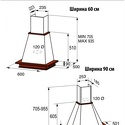 Установка: каминная пристенная, 90 см • Установка: каминная • Режимы работы: отвод, циркуляция • Количество двигателей: 1 • Производительность: 990 м /ч • Потребляемая мощность: 236 Вт • Регулировка мощности: есть, 3 скорости • Тип управления: механическое • Переключатели: слайдеры • Тип ламп: галогенная лампа • Мощность одной лампы: 28 Вт • Количество ламп: 2 • Размеры (ШxВxГ): 898x960x501 мм