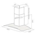 Установка: каминная пристенная, 60 см • Установка: каминная • Режимы работы: отвод, циркуляция • Количество двигателей: 1 • Производительность: 700 м /ч • Потребляемая мощность: 160 Вт • Регулировка мощности: есть, 3 скорости • Антивозвратный клапан: есть • Фильтр: жировой • Тип управления: механическое • Переключатели: кнопочные • Тип ламп: галогенная лампа • Мощность одной лампы: 20 Вт