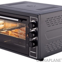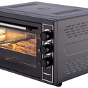 Тип: электрическая • Установка: независимая • Объем: 38 л • Цвет: черный • Дверца: откидная • Максимальная температура: 320 °С • Подсветка: есть • Количество режимов работы духовки: 3 • Переключатели: поворотные • Таймер: есть, до 90 мин • Потребляемая мощность: 1500 Вт • Комплектация: 2 противня, 1 решетка