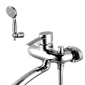 Назначение: ванна+душ • Конструкция: однорычажный • Монтаж: вертикальный • Клапан: керамический • Материал: покрытие - хром • Подводка: жесткая • Монтажные отверстия: 2 отверстия • Форма излива: традиционная • Душевая лейка в комплекте: есть • Держатель для душевой лейки: настенный держатель • Аэратор: есть • Эксцентрики в комплекте: есть • Донный клапан в комплекте: есть