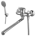 Назначение: универсальный • Конструкция: однорычажный • Монтаж: вертикальный • Клапан: керамический • Подводка: жесткая • Монтажные отверстия: 2 отверстия • Форма излива: традиционная • Душевая лейка в комплекте: есть • Держатель для душевой лейки: настенный держатель • Аэратор: есть • Эксцентрики в комплекте: есть • Донный клапан в комплекте: есть