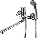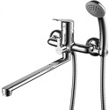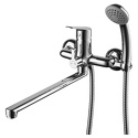 Комплектация - ручной душ, Держатель душевой лейки, душевой шланг, Тип - Двухзахватный, Назначение - Для ванны и душа, Максимальный расход воды - 22.3, Материал корпуса - Латунь, Присоединительный размер - 1\2", Покрытие - Хром, Количество монтажных отверстий - 2, S-образные эксцентрики - Есть, Тип подводки - Жесткая, Форма излива - Традиционная, Поворотный излив - Да, Аэратор - Есть, Цвет - Серебристый, Длина излива - 360, Высота - 20.7, Ширина - 25, Глубина - 37.1