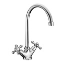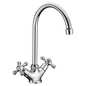 Максимальный расход воды - 22.3, Форма излива - Традиционная, Поворотный излив - Да, Цвет - Серебристый, Количество монтажных отверстий - 1, Встраиваемый - Нет, Покрытие - Хром, Назначение - Для мойки, Высота - 31.5, Присоединительный размер - 1\2", Материал корпуса - Латунь, Аэратор - Есть, Донный клапан - Нет, Термостат - Нет, Тип - Двухзахватный, Тип подводки - Гибкая, Ширина - 13.7, Длина излива - 176, Высота излива - 207