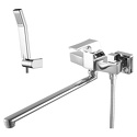 Назначение: универсальный • Конструкция: однорычажный • Монтаж: вертикальный • Клапан: керамический • Подводка: жесткая • Монтажные отверстия: 2 отверстия • Форма излива: традиционная • Душевая лейка в комплекте: есть • Держатель для душевой лейки: настенный держатель • Аэратор: есть • Эксцентрики в комплекте: есть • Донный клапан в комплекте: есть