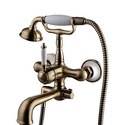 Комплектация - Держатель душевой лейки, душевой шланг, ручной душ, Назначение - Для ванны и душа, Покрытие - Бронза, Материал корпуса - Латунь, Встраиваемый - Нет, Донный клапан - Нет, Присоединительный размер - 1\2", S-образные эксцентрики - Есть, Термостат - Нет, Количество монтажных отверстий - 2, Длина излива - 213, Тип - Однозахватный, Тип подводки - Жесткая, Форма излива - Традиционная, Высота - 26.4, Поворотный излив - Нет, Цвет - Бронзовый, Аэратор - Есть, Глубина - 23