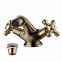 Назначение: для умывальника • Конструкция: двухрычажный • Монтаж: горизонтальный • Клапан: керамический • Материал: покрытие - бронза • Подводка: гибкая • Монтажные отверстия: 1 отверстие • Форма излива: традиционная • Душевая лейка в комплекте: нет • Аэратор: есть • Донный клапан в комплекте: есть