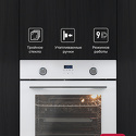 Тип: электрическая • Установка: независимая • Объем: 60 л • Цвет: белый • Дверца: откидная • Максимальная температура: 250 °С • Конвекция: есть • Гриль: есть, электрический • Очистка духовки: традиционная • Подсветка: есть • Количество стекол дверцы духовки: 3 • Мультифункциональная духовка: есть • Количество режимов работы духовки: 9 • Направляющие противней: стандартные • Переключатели: сенсорные, утапливаемые
