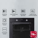 электрический с конвекцией • объем 78 л • утапливаемые переключатели • 7 режимов • очистка ручная • 2 стекла в дверце • направляющие проволочные