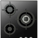 Поверхность: варочная панель • Тип поверхности: газовая • Рабочая поверхность: закаленное стекло • Число конфорок: 3 • Установка: независимая • Газовые конфорки: всего - 3 • Газ-контроль конфорок: есть • Тип управления: механическое • Переключатели: поворотные • Электроподжиг: есть, автоматический • Размеры: 450x510x40 мм • Размер ниши для встраивания: 400x480 мм • Цвет: панель - черный