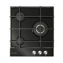 Поверхность: варочная панель • Тип поверхности: газовая • Рабочая поверхность: закаленное стекло • Число конфорок: 3 • Установка: независимая • Газовые конфорки: всего - 3 • Газ-контроль конфорок: есть • Тип управления: механическое • Переключатели: поворотные • Электроподжиг: есть • Размеры: 450x510x40 мм • Размер ниши для встраивания: 400x480 мм