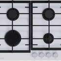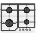 Поверхность: варочная панель • Тип поверхности: газовая • Рабочая поверхность: закаленное стекло • Число конфорок: 4 • Установка: независимая • Газовые конфорки: всего - 4 • Тип управления: механическое • Переключатели: поворотные • Электроподжиг: есть, автоматический • Размеры: 600x510x95 мм • Размер ниши для встраивания: 560x480 мм • Цвет: панель - белый