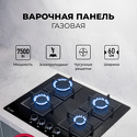 газовая на 4 конфорки • закаленное стекло • мощность: 7500 Вт • автоматический электроподжиг • решетки: чугун • независимая установка • размеры (ШхГ): 60x51 см