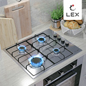 Производитель: Lex Модель: GVS 644 IX - поверхность: варочная панель - тип поверхности: газовая - рабочая поверхность: нерж.сталь - число конфорок: 4 - установка: независимая Описание