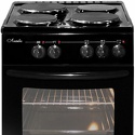 Тип конфорок: электрические • Рабочая поверхность: эмаль • Тип духовки: электрическая • Размеры (ШxВxГ): 500x850x600 мм • Цвет: белый, коричневый, синий, черный • Конфигурация электрических конфорок: 2 x 145 мм - 1000 g 1 x 180 мм - 1500 g • Электрические конфорки: всего - 3 • Объем духовки: 60 л • Подсветка: есть • Количество стекол дверцы духовки: 2 • Тип управления: механическое