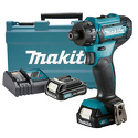 Производитель: Makita Модель: DF033DWAE - Тип: шуруповерт, пистолетная - Обороты: 1700 об/мин, скоростей 2 шт - Патрон: под биту - Функции: реверс, подсветка, тормоз двигателя - Питание: аккумулятор, 12 В, Li-Ion Описание