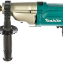 Довольно приятная по дизайну модель. К сожалению, при многих плюсах есть глобальные минусы. Первый и самый главный: она просто слабая. Дерево, пластик, металл сверлит нормально, а если надо работать на стенах, то сначала надо думать. Кирпич сверлит неплохо. А вот с бетонной стеной может выйти осечка. Некоторые плиты ей не поддаются. Второй минус: время от времени выключается ударный режим. Прямо во время работы переключатель съезжает, и удар пропадает совсем. С учетом того, что фишка ударной дрели это возможность сверлить стены, в том числе с ударом, данная модель явно не самая удачная модель Макиты.
