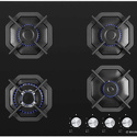 Поверхность: варочная панель • Тип поверхности: газовая • Рабочая поверхность: закаленное стекло • Число конфорок: 4 • Установка: независимая • Газовые конфорки: всего - 4 • Газ-контроль конфорок: есть • Тип управления: механическое • Переключатели: поворотные • Электроподжиг: есть, автоматический • Размеры: 590x515x51 мм • Размер ниши для встраивания: 560x485 мм • Цвет: панель - черный