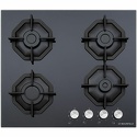 Поверхность: варочная панель • Тип поверхности: газовая • Рабочая поверхность: закаленное стекло • Число конфорок: 4 • Установка: независимая • Газовые конфорки: всего - 4 • Газ-контроль конфорок: есть • Тип управления: механическое • Переключатели: поворотные • Электроподжиг: есть, автоматический • Размеры: 590x515x51 мм • Размер ниши для встраивания: 560x485 мм • Цвет: панель - черный