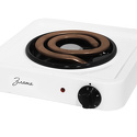 Тип конфорок: электрические • Рабочая поверхность: стеклоэмаль • Тип духовки: нет • Размеры (ШxВxГ): 315x85x305 мм • Цвет: белый, нерж.сталь, черный • Конфигурация электрических конфорок: 1 x 145 мм - 1000 g • Электрические конфорки: всего - 1 • Тип управления: механическое • Переключатели: поворотные • Максимальная потребляемая мощность: 1000 Вт