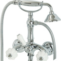 Назначение: ванна+душ • Конструкция: двухрычажный • Монтаж: горизонтальный • Материал: латунь, покрытие - хром • Подводка: жесткая • Монтажные отверстия: 5 отверстий • Форма излива: традиционная • Душевая лейка в комплекте: есть
