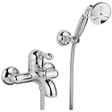 Назначение: ванна+душ • Конструкция: однорычажный • Монтаж: вертикальный • Материал: покрытие - хром • Подводка: жесткая • Монтажные отверстия: 2 отверстия • Форма излива: традиционная • Душевая лейка в комплекте: есть • Держатель для душевой лейки: настенный держатель • Донный клапан в комплекте: есть