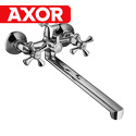 Тип: для ванны, для душа, для умывальника, двухвентильный • Монтаж смесителя: настенный • Высота излива: 148 мм