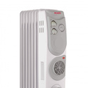 Тип: масляный радиатор • Нагревательный элемент: электрическая спираль • Мощность: 1900 Вт • Напряжение питания: 220 В, 240 В • Размеры (ШxВxГ): 240x630x330 мм • Регулировка мощности: есть • Вентилятор: есть • Количество секций радиатора: 7 • Управление: механическое • Колесики: есть • Ручка: есть • Отделение для хранения кабеля: есть • Вес: 8.3 кг • Цвет: белый, серый