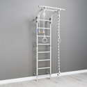 Код товара: 557147 Цвет - белый; Тип - шведская стенка; Комплектация комплекса - гимнастические кольца, турник, трапеция, канат; Функции - регулировка высоты турника; Особенности конструкции - массажные ступени; Максимальная нагрузка - 100 кг; Основной материал - металл; Материал ступеней и перекладин - металл; Крепление - к стене; Размещение - в помещении; Высота - 223 см; Ширина шведской стенки - 49 см; Вес - 23.9 кг