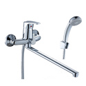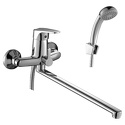 Присоединительный размер - 1\2", Ширина - 21.5, Покрытие - Хром, Тип - Однозахватный, Термостат - Нет, Количество монтажных отверстий - 2, Назначение - Для ванны и душа, Форма излива - Традиционная, Поворотный излив - Да, Материал корпуса - Латунь, Встраиваемый - Нет, Тип подводки - Жесткая, S-образные эксцентрики - Есть, Аэратор - Есть, Цвет - Серебристый, Глубина - 41.8, Комплектация - Держатель душевой лейки, душевой шланг, ручной душ, Донный клапан - Нет, Длина излива - 404