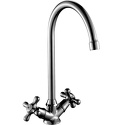 Назначение - Для мойки, Покрытие - Хром, Материал корпуса - Латунь, Встраиваемый - Нет, Тип - Двухзахватный, Термостат - Нет, Аэратор - Есть, Высота излива - 189, Поворотный излив - Да, Присоединительный размер - 1\2", Высота - 29.2, Донный клапан - Нет, Форма излива - Традиционная, Длина излива - 165, Цвет - Серебристый, Количество монтажных отверстий - 1, Тип подводки - Гибкая, Ширина - 15.7