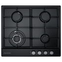 Поверхность: варочная панель • Тип поверхности: газовая • Рабочая поверхность: эмаль • Число конфорок: 4 • Установка: независимая • Газовые конфорки: всего - 4 (1 конфорка "Тройная корона") • Газ-контроль конфорок: есть • Тип управления: механическое • Переключатели: поворотные • Электроподжиг: есть, автоматический • Размеры: 580x510x100 мм • Размер ниши для встраивания: 560x490 мм • Цвет: панель - черный