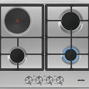 Поверхность: варочная панель • Тип поверхности: комбинированный • Рабочая поверхность: эмаль • Число конфорок: 4 • Установка: независимая • Электрические конфорки: чугунные; всего - 1 • Конфигурация электрических конфорок: 1 x 1000 • Газовые конфорки: всего - 3 • Газ-контроль конфорок: есть • Тип управления: механическое • Переключатели: поворотные • Электроподжиг: есть, автоматический • Размеры: 590x520 мм