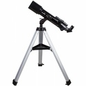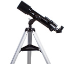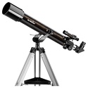Короткофокусный ахроматический рефрактор с апертурой 70 мм. На оптические поверхности нанесено многослойное просветляющее покрытие. Телескоп снабжен оптическим искателем с 6-кратным увеличением. В комплект входят окуляры 10 мм и 25 мм. Труба устанавливается на азимутальную монтировку с алюминиевой треногой.