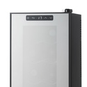 Тип: однокамерный винный шкаф • Расположение: отдельностоящий • Количество компрессоров: 1 • Цвет: зеркальный • Размеры (ШxВxГ): 254x463x514 мм • Количество дверей: однодверный • Общий объем: 21 л • Винный шкаф: 8 бут. • Управление: электронное • Освещение в холодильной камере: есть • Материал полок: металл-хром • Класс энергопотребления: A+