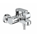 Назначение: ванна+душ • Конструкция: однорычажный • Монтаж: вертикальный • Клапан: керамический • Материал: покрытие - хром • Монтажные отверстия: 2 отверстия • Форма излива: традиционная • Душевая лейка в комплекте: есть • Держатель для душевой лейки: настенный держатель • Аэратор: есть • Донный клапан в комплекте: есть